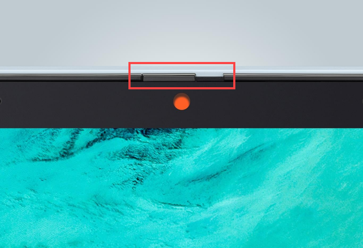 Privacy switch on top by webcam