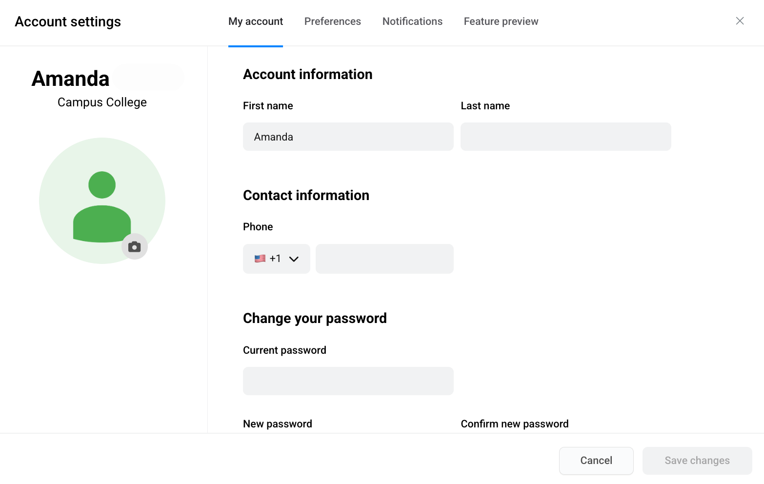 Within the Advanced Settings menu, you can manage your account details. For example, you can update your profile picture, contact information, and password.