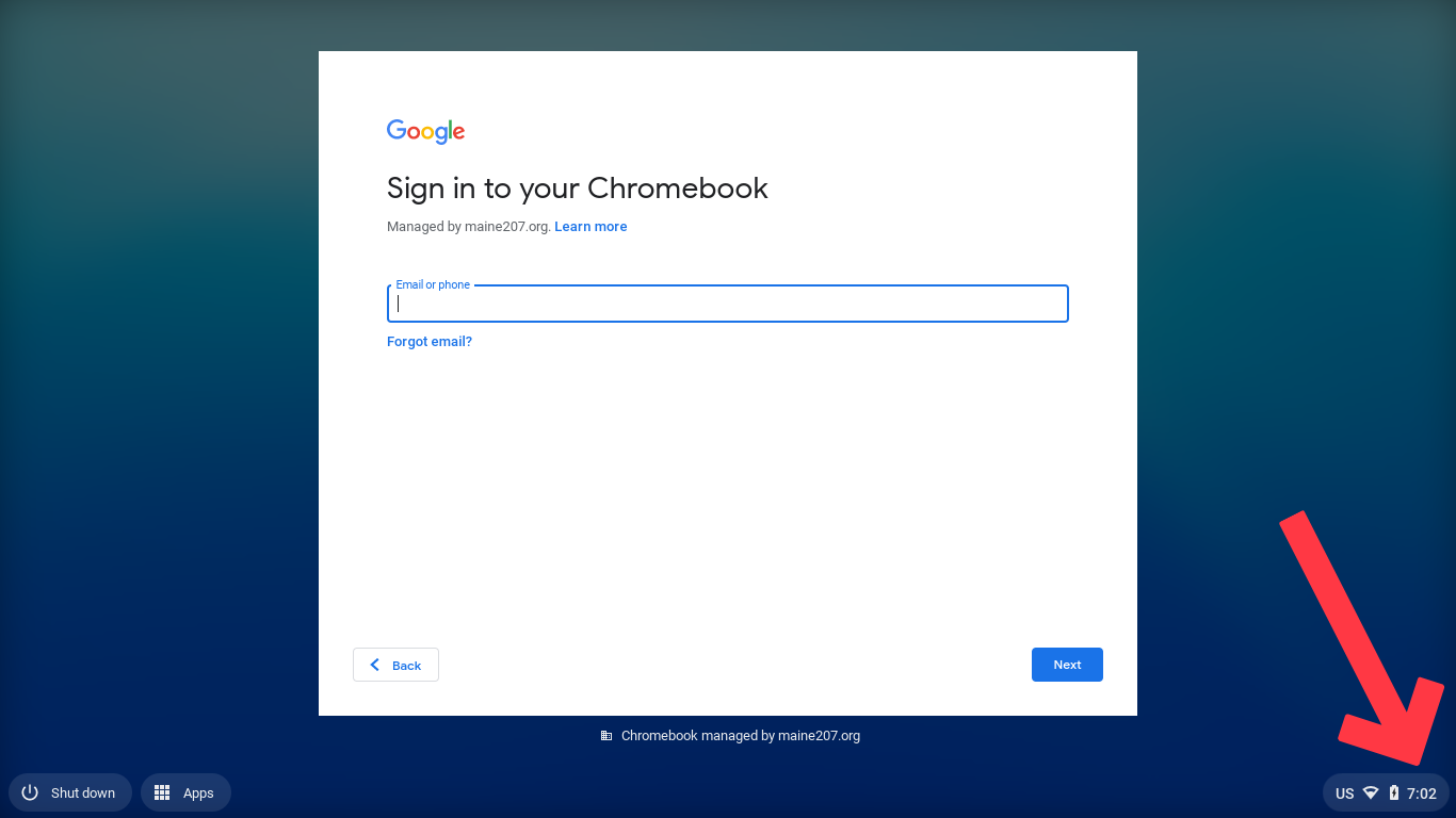 Click the time (bottom-right) to open the Quick Settings menu from the sign in page.