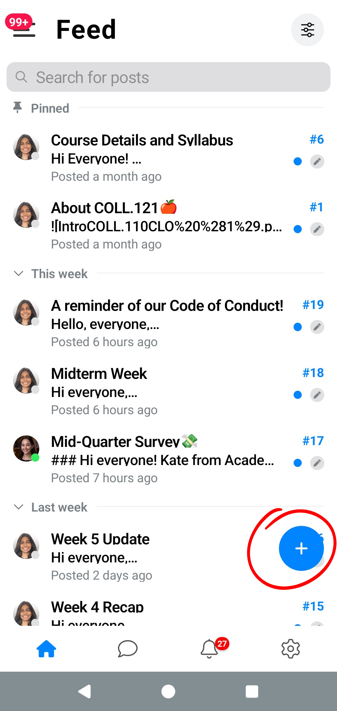 This article goes over how to navigate Campuswire on the Android app